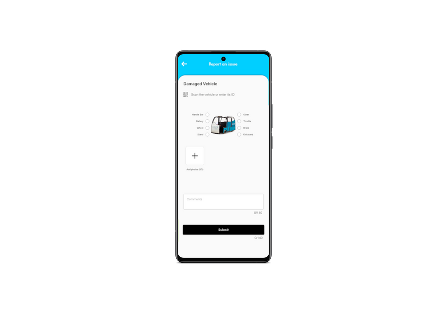 Mobile app feature for staff to instantly report incidents and vehicle conditions, with image and comment uploads.
